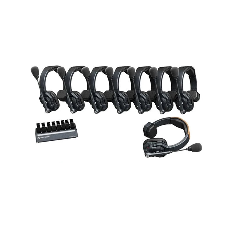 The Solidcom SE 5S Global 5-Person Full-Duplex Single-Ear Noise-Canceling Headset Intercom from Hollyland offers small- and medium-sized production teams a cost-effective yet powerful communication solution. This configuration includes 1 master single-ear headset and 4 remote single-ear headsets. The system operates in the 2.4 GHz frequency range and features a lightweight design, Environmental Noise Cancellation, resistance to water and wind, and extended battery life—empowering team members to collaborate effectively in various environments, from commercial video production to waterside operations. The system can accommodate a total of 5 users at once, so this configuration cannot be expanded with additional remote headsets.