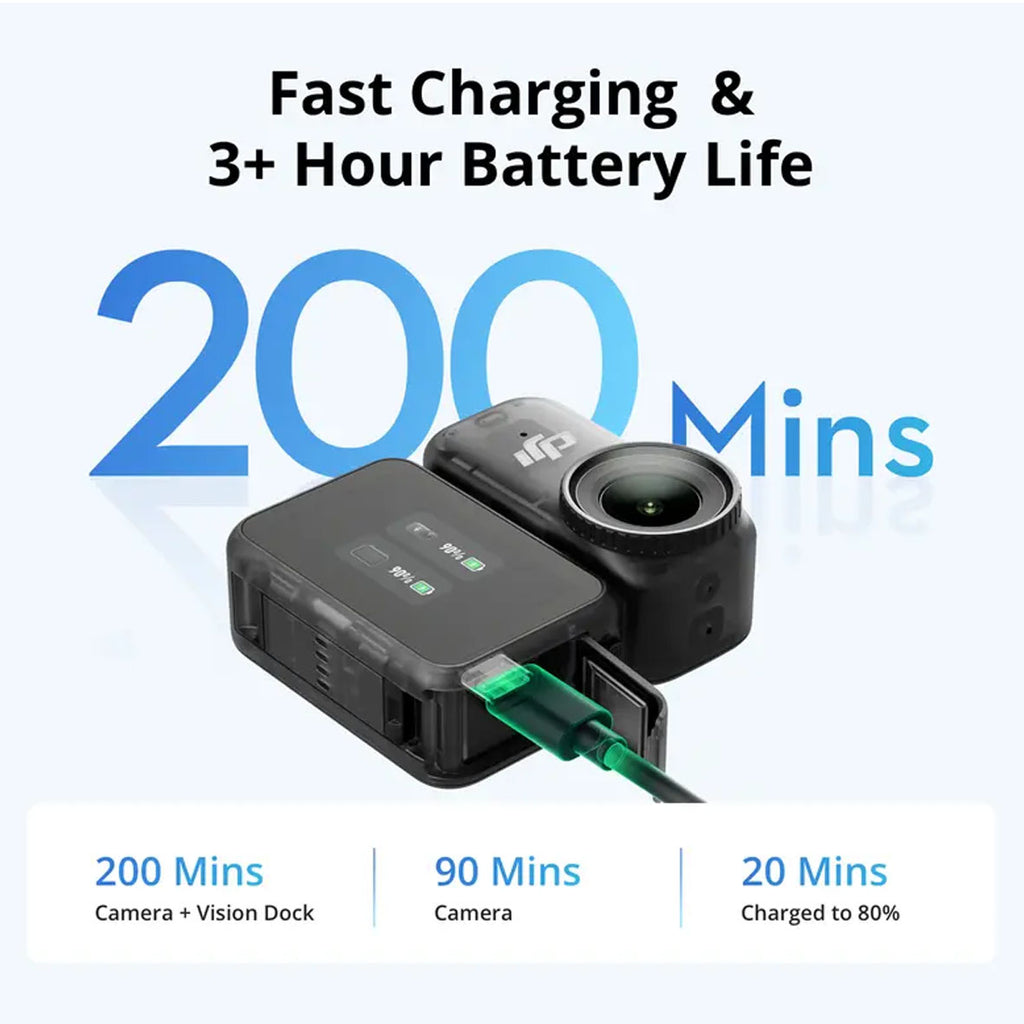 The Osmo Nano features a high-speed USB 3.1 port to connect to mobile devices or computers using a PD fast-charging cable for lightning-fast transfers up to 600 MB/s. You can also enjoy wireless export speeds of up to 80 MB/s, allowing you to quickly transfer your footage to your smartphone or other mobile devices.The Multifunctional Vision Dock also includes a built-in microSD card slot for quick footage export with a single tap.