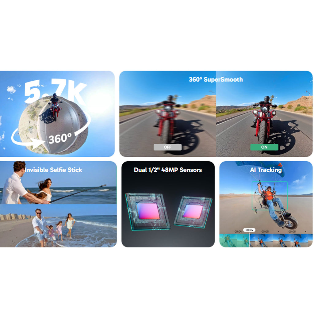Equipped with two massive 1/2" 48MP sensors, the AKASO 360 captures more pixels for sharper, clearer images, bringing your action to life.