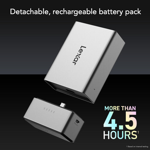 Designed for photographers and videographers who want to back up media and manage drives in the field, the Professional Workflow Go Docking Station from Lexar is a 2-bay portable docking station that may be customized with a variety of Lexar Professional Workflow peripherals, including their Dual-Slot UHS-II SD Card Reader, UHS-II SD/microSD Card Reader, CFexpress 4.0 Type B Card Reader, CFexpress 4.0 Type A Card Reader, and Portable SSD. Each bay operates at 10 Gb/s and there are also two 10 Gb/s USB-C ports for backing up from your smartphone. Power is provided by an included 5000mAh battery that is detachable and lasts for up to 4.5 hours. When depleted, it may be recharged using an integrated USB-C port that doubles as a charging port for other devices.