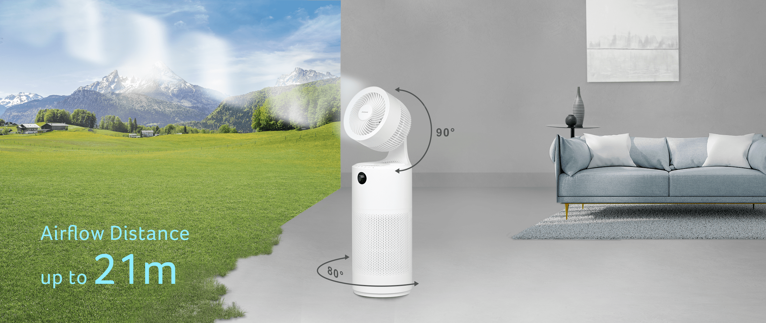 Dan mengalirkan udara bersih secara hening hingga mencapai jarak 12 meter."