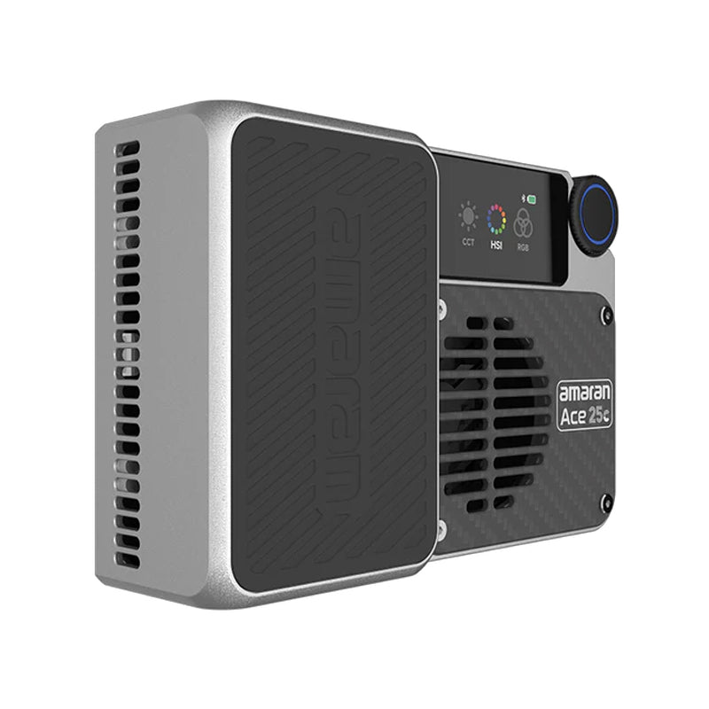 Bringing best-in-class brightness to on-the-go, camera-mounted light setups, the green Ace 25c RGB LED Light Panel from amaran is a versatile, creator-friendly light source that sets up quickly and travels light. When operating in Boost mode, the light's 32W output notches 1171 lux at 3.3' and 5600K, with approximately 50 minutes of runtime at this maximum setting. The light also clocks upwards of four hours and 40 minutes of runtime in its low-power Silent mode. The Ace 25c has a 360° color control in both RGB and hue, both saturation and intensity modes, and a CCT color temperature range of 2300-10,000K with a green/magenta adjustment option. In all its modes, the Ace 25c achieves a high color accuracy of 95 in both CRI and TLCI ratings.