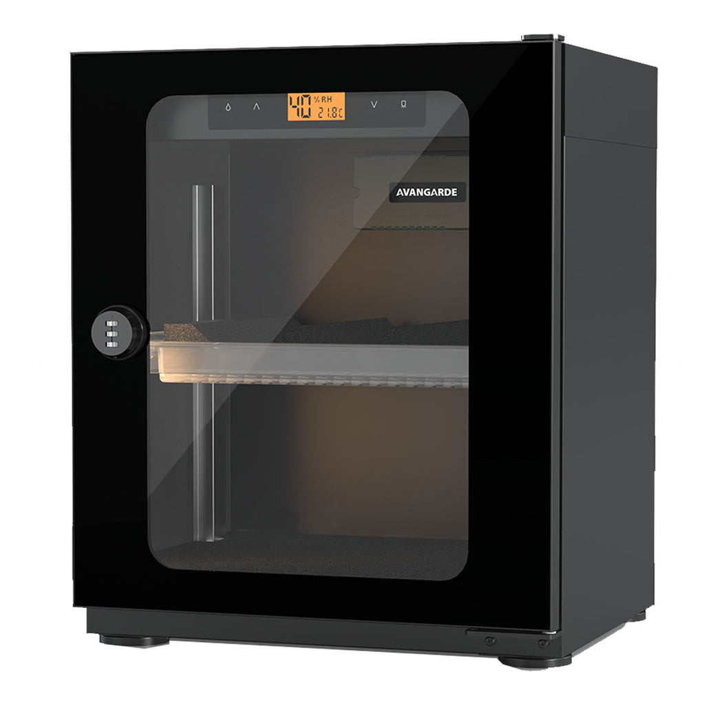 Lindungi lensa, peralatan fotografi dan optik, elektronik mobile, dan aksesori berharga lainnya dari kelembapan, kotoran, dan debu yang berlebihan. Dengan Avangarde. Electronic Dry Cabinet. TE Cooling Wafer yang cepat bertindak mengatur kelembapan relatif di dalam kabinet antara 35-60% untuk membantu mencegah pertumbuhan jamur dan korosi yang dapat merusak peralatan Anda. Penyesuaian kelembapan berlangsung dalam periode 1 hingga 3 jam.