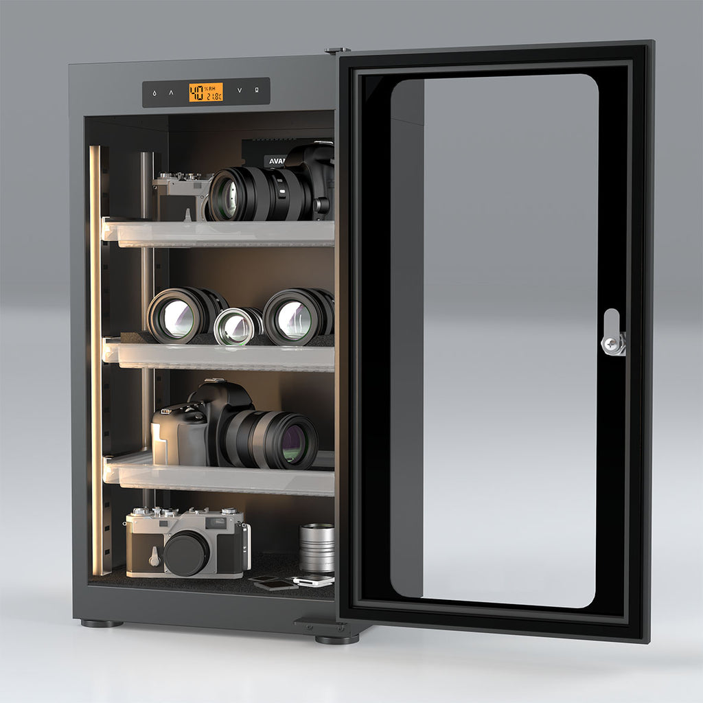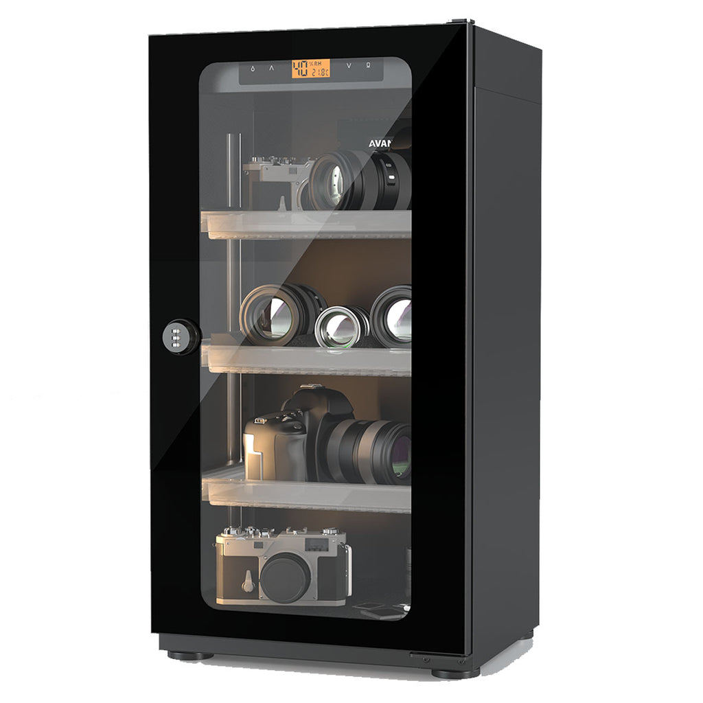 Lindungi lensa, peralatan fotografi dan optik, elektronik mobile, dan aksesori berharga lainnya dari kelembapan, kotoran, dan debu yang berlebihan. Dengan Avangarde [AV-DC..] Electronic Dry Cabinet. TE Cooling Wafer yang cepat bertindak mengatur kelembapan relatif di dalam kabinet antara 35-60% untuk membantu mencegah pertumbuhan jamur dan korosi yang dapat merusak peralatan Anda. Penyesuaian kelembapan berlangsung dalam periode 1 hingga 3 jam.