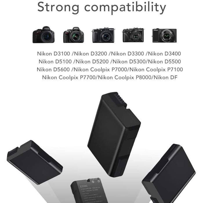 Works with these popular Nikon models that use EL14 & EL14a batteries: D3100 / D3200 / D3300 / D5100 / D5200 / D5300 / D5500 / D5600 / P7000 / P7100 / P7700 / P7800 / etc