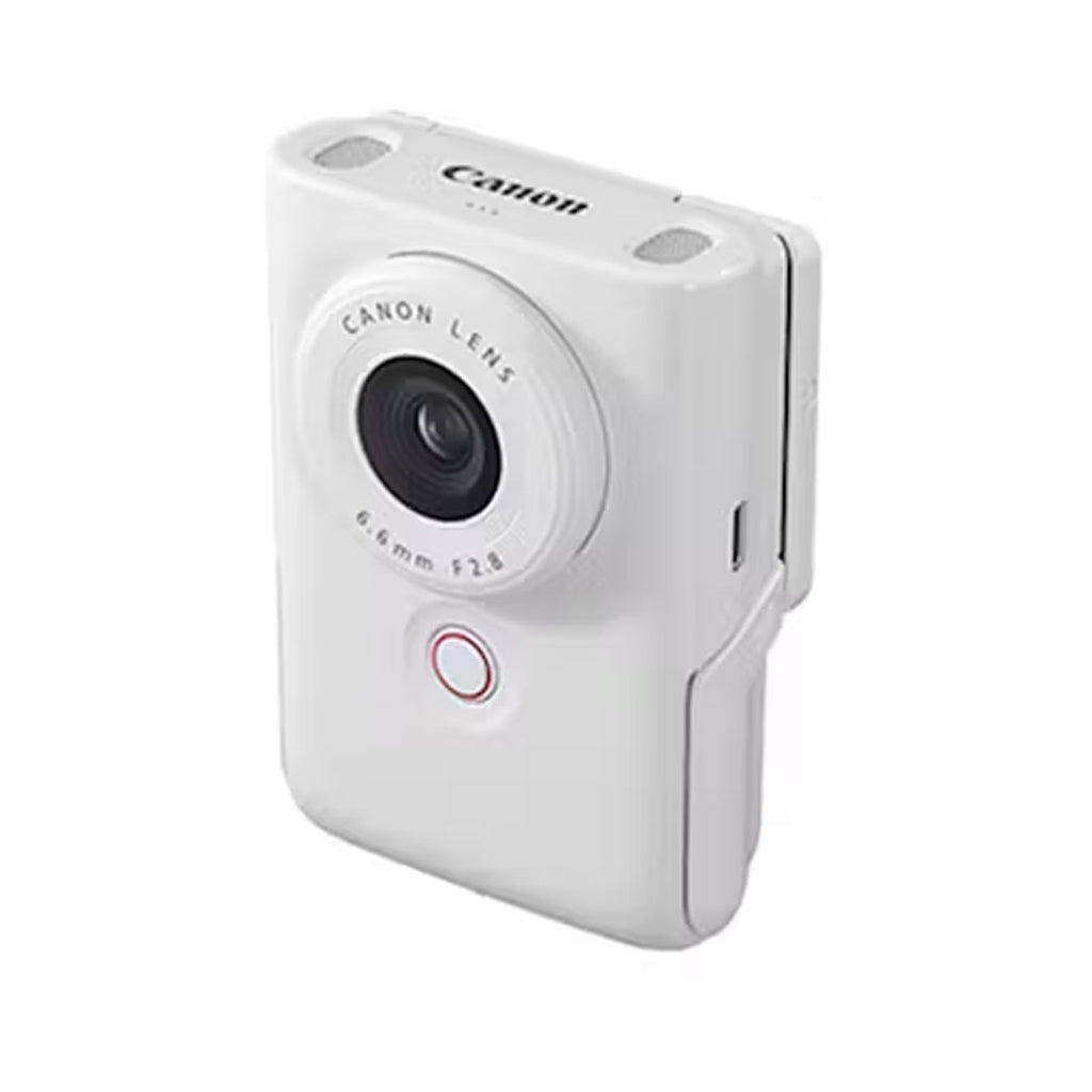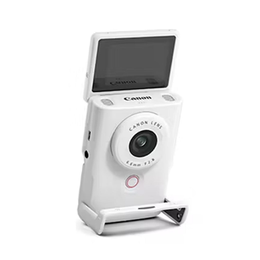 Condensing the utility of a vlogging studio into a portable, pocket-sized powerhouse, the Canon Powershot V10 is a White, vlog-ready video camera with a 19mm wide-angle lens, high-quality stereo sound recording, and a built-in 30° stand for capturing and sharing your unique story. The camera, which also shoots still photos, features the same 1" CMOS sensor from the popular PowerShot G series cameras for shooting UHD 4K at up to 29.97 fps or Full HD at 59.94 fps. Immediately share your creations with the built-in Wi-Fi capabilities and the Canon Camera Connect app, or live stream to your followers in Full HD at 30 fps.