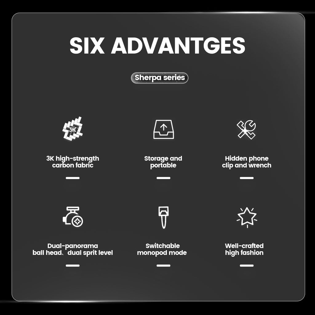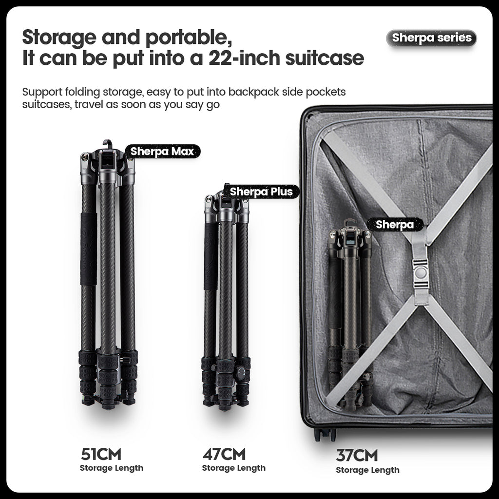 • Fotopro Sherpa Carbon Fiber Travel Tripod with FPH-42QS Arca-Type Ball Head and Monopod