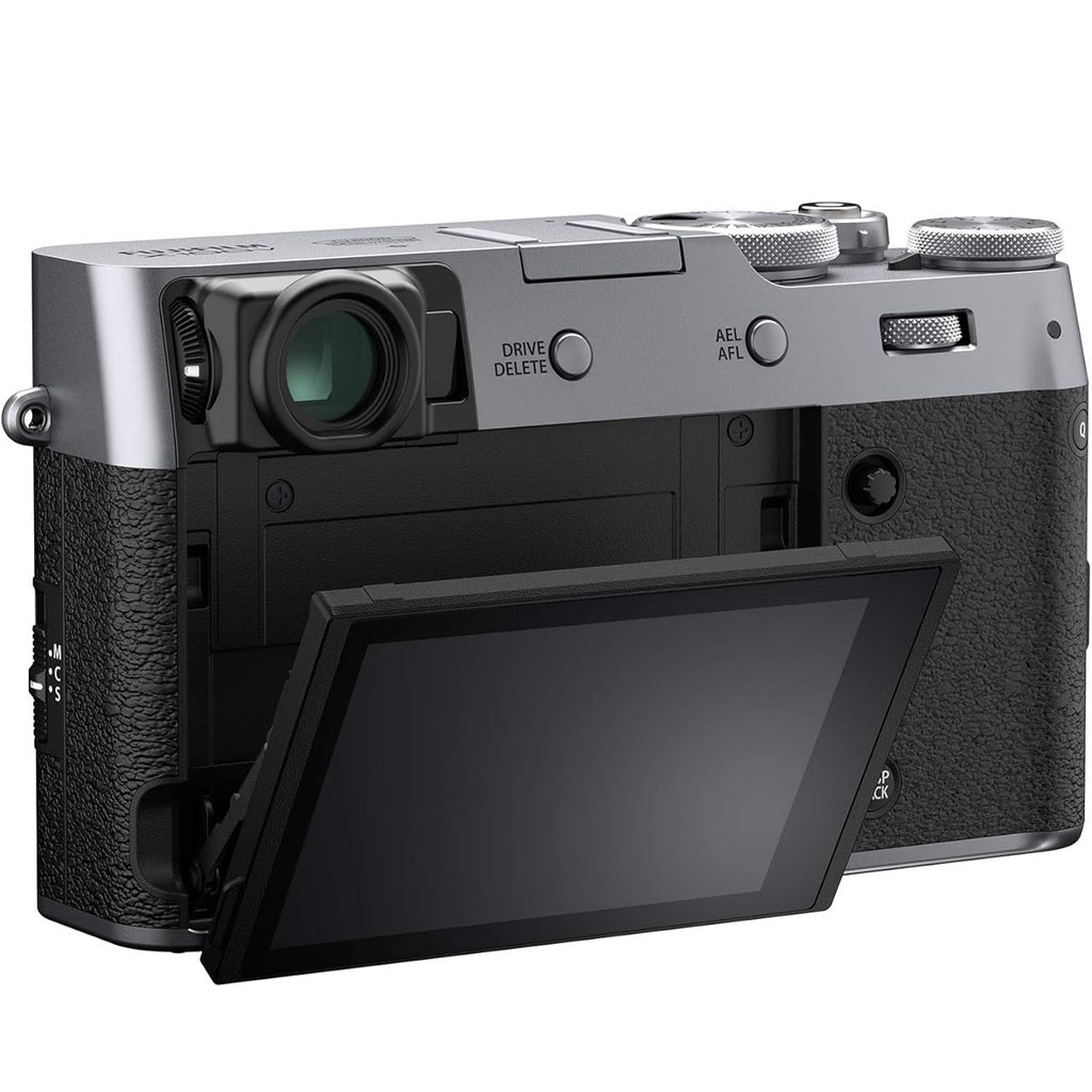 Beyond imaging, the X100V retains the tried-and-true rangefinder-inspired body design that has made this series of cameras so special. The popular Advanced Hybrid Viewfinder is used once again, but has been updated with a higher resolution 3.69m-dot OLED EVF for clearer viewing. This can still be flicked away To reveal a clear 0.52x-magnification optical finder To suit the purists' way of photographing. Complementing the finder is a 3.0" 1.62m-dot LCD touchscreen, which features a two-way tilting design To support working from both high and low angles. Then, there is also the prized built-in wide-angle prime lens that offers a useful 35mm-equivalent focal length and a bright f2 maximum aperture. This lens has been redesigned from previous versions To realize sharper imagery with less distortion, closer focusing, and, physically, when you attach the optional adapter ring and optional protection filter, it completes a weather-resistant design. Additionally, keeping you connected, the X100V also features built-in Bluetooth and Wi-Fi To enable wireless transferring of images To a mobile device as well as remote camera control from a smartphone or tablet.
