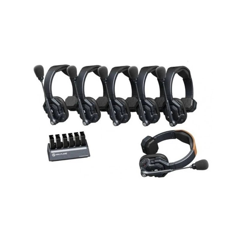 The Solidcom SE 6S 6-Person Full Duplex Wireless Intercom Headset from Hollyland offers small production teams a cost-effective yet powerful communication solution. This configuration includes 1 master single-ear headset and 3 remote single-ear headsets. The system operates in 1.9 GHz frequency range and features a lightweight design, Environmental Noise Cancellation, resistance to water and wind, and extended battery life—empowering team members to collaborate effectively in various environments, from commercial video production to waterside operations. The system can be expanded with an additional remote headset to accommodate a total of 5 users at once.