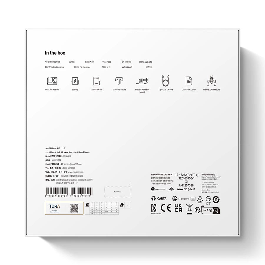 Capture all the action on the road, in the studio, or in the water with the Ace Pro Action Camera from Insta360. This compact, easy-to-use action camera provides up to 8K photo and video capture in a tiny action body that can be mounted and carried anywhere when traveling, shooting action videos, or vlogging. The large 1/1.3" sensor allows you to capture up to 8K24 resolution and features an automatic HDR mode and superior low-light performance to capture vibrant, realistic color. The wide-angle lens was developed with world-class lensmaker Leica, allowing you to capture up to a 151° field of view.