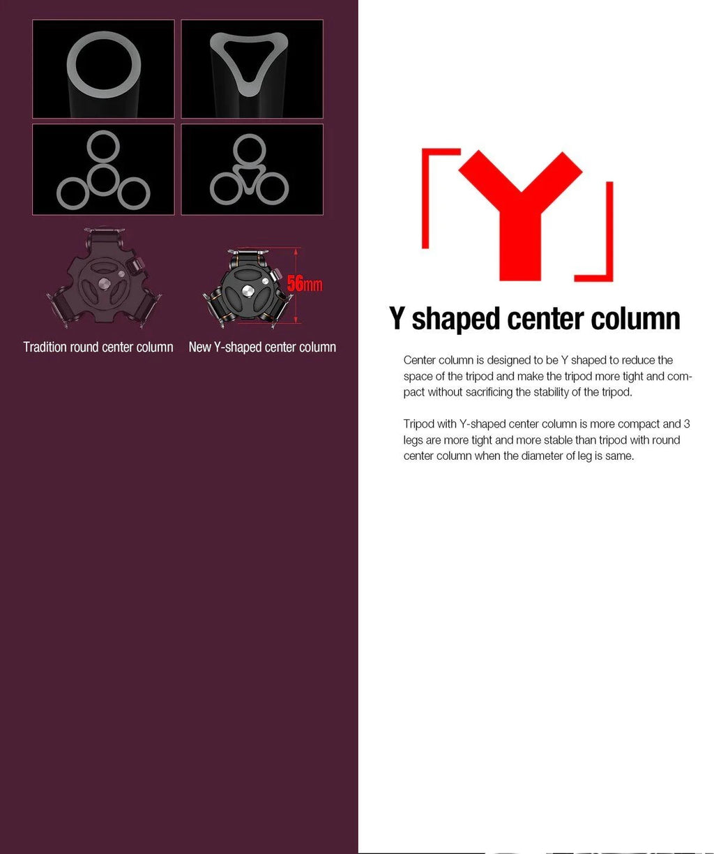 Leofoto LY-224C+LH-25(Red) Carbon Fiber Y Shaped Center Column Tripod