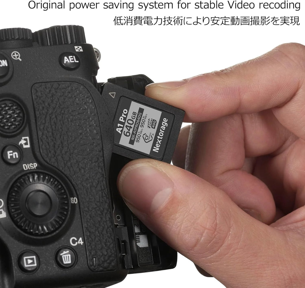 The NX-A1PRO Series CFexpress Type A card is equipped with Nextorage’s Dynamic Auto Power Save, a power saving system that reduces 88 %2 power consumption in video recording compared to non-equipped pSLC CFexpress cards contributes not only to saving the camera’s battery life, but to maintaining sustained write speed by suppressing thermal throttling.3