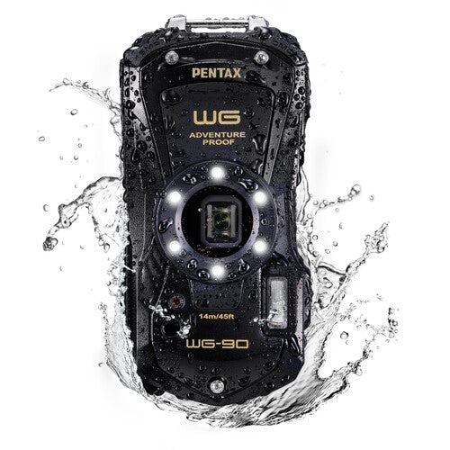 Built to operate in the harshest conditions, the black Pentax WG-90 Digital Camera from Ricoh provides a reliable means of capturing still photos and video in situations where ordinary cameras fall short. Equipped with a 16MP BSI CMOS sensor, the WG-90 delivers high resolution images with low noise. In addition to a max sensitivity of ISO 6400, this camera provides an array of options for dealing with low light shooting situations, including a built-in ring light, a flash, and an LCD display that allows brightness adjustment. With the WG-90, you can test the limits of media capture in extreme conditions by taking your camera underwater to depths of 46' or shooting in freezing temperatures as low as -10°C/14°F without issue.