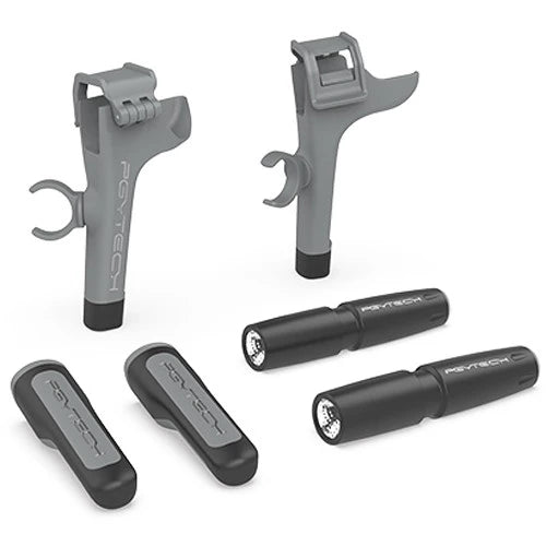 Provide illumination to your landing zone and protect your drone from damage with this Landing Gear Extensions & LED Light Set for Mavic Air 2 from PGYTECH. Making the Mavic more compatible with rugged terrain, these extensions boost the height of your drone by 1.4". The extra elevation lets it clear rocks and debris that would otherwise prevent a takeoff or landing. It also helps eliminate damage to the gimbal and drone.They are engineered to easily snap onto the Mavic Air 2, and an anti-release buckle and TPU soft rubber material work together to prevent them from slipping off. The rear extensions feature clamps that hold two LED lights, which provide illumination of the drone's surroundings. Each extension is made from aircraft-grade aluminum that's wear and scratch resistant. The lightweight metal and LED lights only add 1.9 oz of weight, and silicone shock-absorbing foot pads help provide smooth landings.