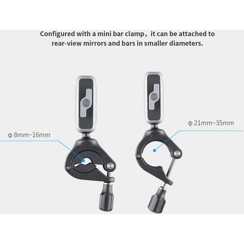 Secure your smartphone to your bicycle or motorcycle with this Smartphone Handlebar Mount from PGYTECH. With the included insert, the mount clamps to your handlebars, a side mirror support arm, or similar object with a 0.3 to 0.6". Without the insert, it supports 0.9 to 1.4" diameter handlebars. The manual tightening knob ensures secure attachment that stays put, even when you're riding on rough terrain. Your phone is equally protected in a full wrap mount that has feet, dual arms, and a top clamp. Both mounts are connected via a locking dual ball head magic arm that offers 180° tilt & 360° rotation adjustment for the best angle to view GPS data or incoming notifications.