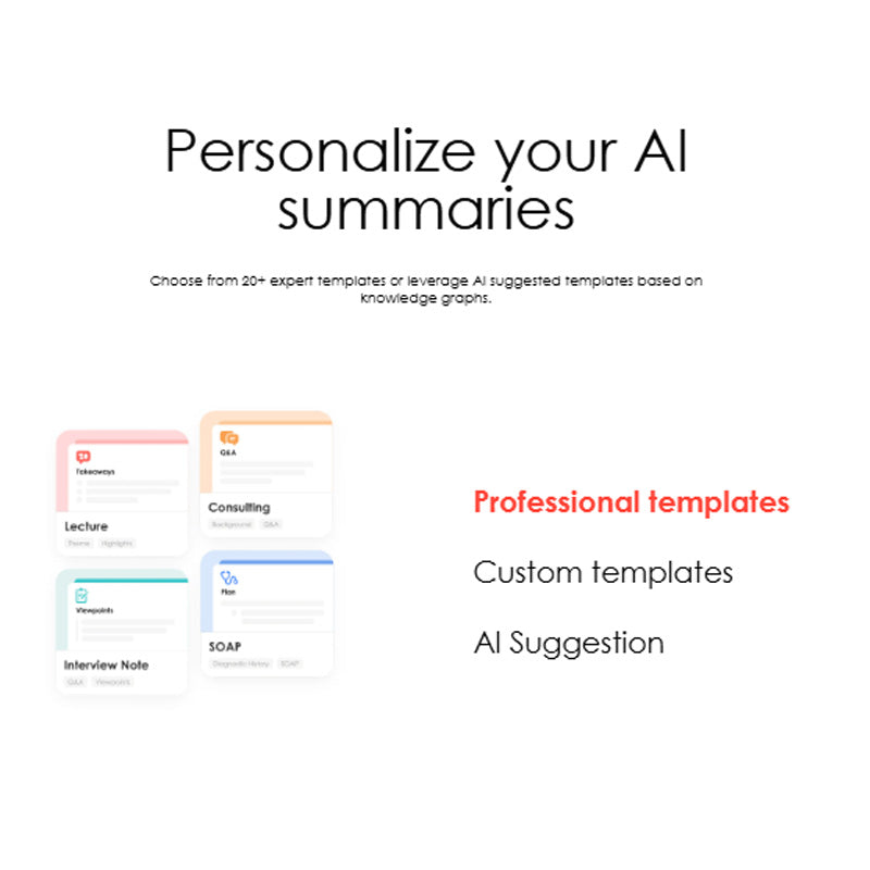 Easily access your recordings, transcripts, summaries, and more through the PLAUD App or Web with unlimited storage on our secure cloud service.