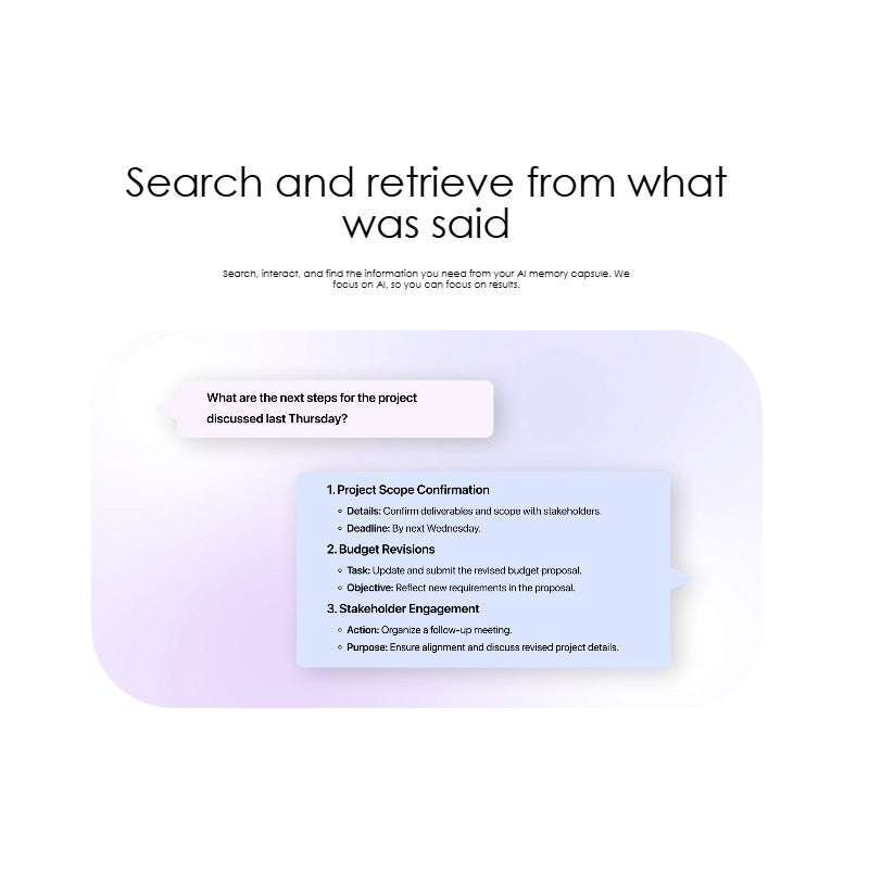 Search, interact, and find the information you need from your AI memory capsule. We focus on AI, so you can focus on results.