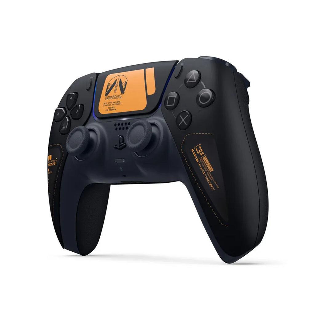 When it comes to design, the limited edition DualSense doesn’t include any new features. However, it does bear a striking visual design, with the trackpad being dominated by the Drawbridge insignia and the motto “Both stick and rope, to protect and connect. Together, for tomorrow.” Both grips also have additional orange details, including a barcode and a host of different numbers that will likely have some relevance in-game.