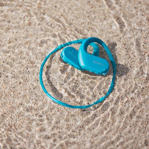 The blue Sony NW-WS413 Sports Walkman Digital Music Player is designed for active users. This headset features a unique ergonomic design that fits comfortably around your head and frees you from being tethered To another media player. It equipped with 4GB of internal flash memory and supports MP3, WMA, AAC-LC, and L-PCM audio files, so you'll have plenty of music To score your workout. To accommodate all active users, the NW-WS413 was designed To be water and dustproof, and To operate in extreme temperatures. Supporting its waterproof design, the NW-WS413 comes with a set of swimming earbuds you can use when you're in the pool.