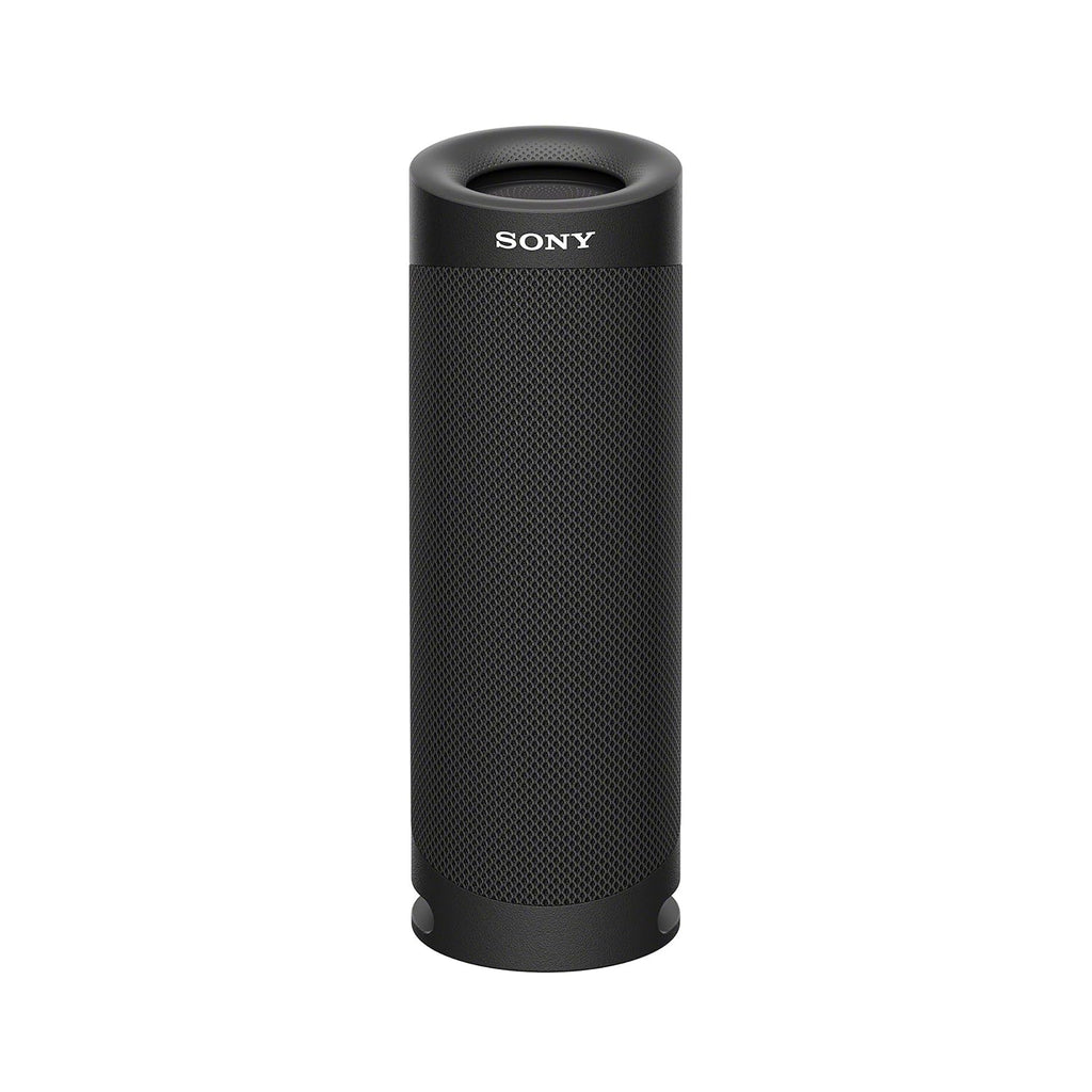 Enjoy your favorite music wirelessly nearly anywhere with the black Sony SRS-XB23 Portable Bluetooth Speaker. With Bluetooth wireless technology, the SRS-XB23 can stream audio from your smartphone or tablet, and the built-in battery lasts up to 12 hours in normal mode, or up to 10 hours in EXTRA BASS mode. The speaker's IP67 dustproof and waterproof rating allows safe use on the beach, by the pool, or nearly anywhere. The Party Connect function lets you connect to up to 100 compatible speakers to stream the same song all over the house.