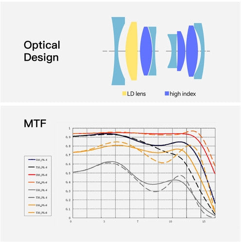 Robustly constructed of eight elements in six groups, including one low dispersion element and three high index elements